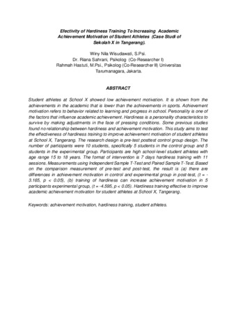 Nila Wisudawati, Winy (2016) Efektivitas pelatihan hardiness untuk meningkatkan motivasi berprestasi akademik siswa atlet (Studi pada sekolah X, Tangerang). Masters thesis, Universitas Tarumanagara.