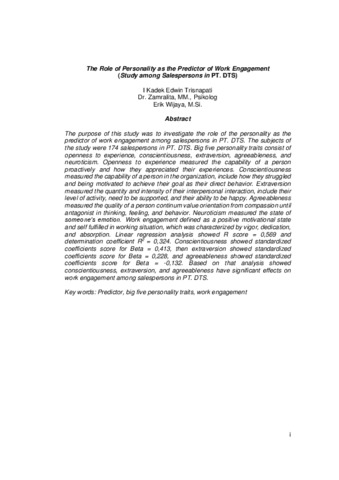 Edwin Trisnapati, I Kadek (2016) Peran kepribadian sebagai prediktor work engagement (Studi pada salesperson di PT. DTS). Masters thesis, Universitas Tarumanagara.