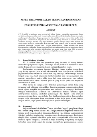 Sukania, I Wayan ASPEK ERGONOMI DALAM PERBAIKAN RANCANGAN FASILITAS PEMBUAT CETAKAN PASIR DI PT X. Karya Ilmiah Dosen.