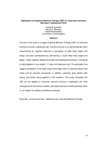 Sukamta, Sylvanie (2014) Penerapan Cognitive Behavior Therapy dalam Menangani Anorexia Nervosa pada Remaja Perempuan. Masters thesis, Universitas Tarumanagara.