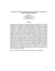Adolescence is a transition period between childhood and adulthood. At this period adolescents begin to approach the demands of adulthood and must learn to take full responsibility on themselves in almost all dimensions of their lives. One important thing that can help adolescents go through their period of self-development demands is self-efficacy, including to help educational demands for students at the school. Education is a fundamental thing for self-improvement of the students in seizing a successful life in the future as well as contributing to improve science for the better environment. Therefore, this study is aimed to determine how is the role of emotional intelligence and learning styles affect academic self-efficacy of adolescent students. Research design in this study is quantitative research and non-experimental in nature with 161 respondent. The results of the regression analysis of the three variables obtain the value of F=23,44; p<0,01 which indicates a significant positive effect between emotional intelligence and learning style in academic self-efficacy. Therefore, the two variables have a role on the formation of academic self-efficacy. The results of the regression analysis separately on emotional intelligent variable to self-efficacy obtain the value of t=7,46; p<0,01 indicating a significant positive effect between the two variables. The results of the regression analysis separately on visual, auditory, and kinesthetic learning styles sequentially variables to academic self-efficacy obtain the value of t=0,85, p>0,01; t=-0,16, p<0,01; t=-0,16, p<0,01 indicating that there is no significant effect of visual learning style to academic self-efficacy, and there is a significant negative effect of auditory and kinesthetic learning styles on academic self-efficacy.