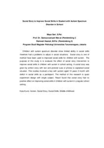 Sari, Maya (2014) Peran Social Story dalam Meningkatkan Keterampilan Sosial Anak Penyandang Autisme di Sekolah Regular. Masters thesis, Universitas Tarumanagara.