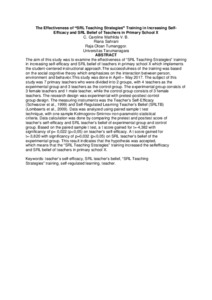 The aim of this study was to examine the effectiveness of “SRL Teaching Strategies” training in increasing self-efficacy and SRL belief of teachers in primary school X which implements the student-centered instructional approach. The successfulness of the training was based on the social cognitive theory which emphasizes on the interaction between person, environment and behavior. This study was done in April – May 2017. The subject of this study was 7 primary teachers who were divided into 2 groups, with 4 teachers as the experimental group and 3 teachers as the control group. The experimental group consists of 3 female teachers and 1 male teacher, while the control group consists of 3 female teachers. The research design was experimental with pretest-posttest control group design. The measuring instruments was the Teacher’s Self-Efficacy (Schwarzer et al., 1999) and Self-Regulated Learning Teacher’s Belief (SRLTB) (Lombaerts et al., 2009). Data was analyzed using paired sample t test technique, with one sample Kolmogorov-Smirnov non-parametric statistical criteria. Data calculation was done by comparing the pretest and posttest score of teacher’s self-efficacy and SRL teacher’s belief of experimental group and control group. Based on the paired sample t test, a t score gained for t=-4,382 with significancy of p= 0,022 (p<0,05) on teacher’s self-efficacy. A t score gained for t=-3,820 with significancy of p=0,032 (p<0,05) on SRL teacher’s belief of the experimental group. This result indicates that the hypothesis was accepted, which means that the “SRL Teaching Strategies” training increased the selfefficacy and SRL belief of teachers in primary school X