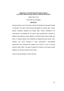 Dayung (rowing) is one of the types of sports that became the ancestral heritage of Indonesia. This sport continues being developed into several types, namely Rowing, Canoeing, Kayaking and Dragon Boat. Various competitions are conducted by the atheletes for the sake of sport achievements. Numbers of athletes may experience anxiety. Based on the SAS-II (Sport Anxiety Scale) test seven (7) Jakarta athletes were classified as experiencing high anxiety. Such condition may cause weakness in sport achievements. Psychological interventions may necessarily be needed, and of them is a form of self-talk (Hardy & Hardy, 2004). This report is based on the study of how Jakarta rowing atheletes use self-talk to deal with their anxiety.