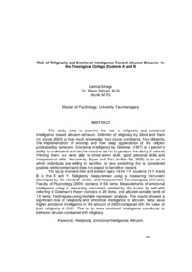 Sinaga, Lamria (2017) Peran religiositas dan kecerdasan emosional terhadap perilaku altruisme pada mahasiswa Sekolah Tinggi Teologi A dan B di Kota X dan Y. Masters thesis, Universitas Tarumanagara.
