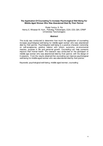 The study was conducted to determine how much the application of counseling increase psychological well-being for middle-aged woman who was abandoned died by their partner. Psychological well-being is a positive character ownership on self-acceptance, positive relation with others, autonomy, environmental mastery, purpose in life and personal growth. Counseling can help someone improve their mental health. The research was conducted on the participant of middle age woman who was abandoned died by their partner, with the design of 6 sessions. From the results obtained that counseling can improve psychological well-being for middle-aged woman who was abandoned died by their partner.