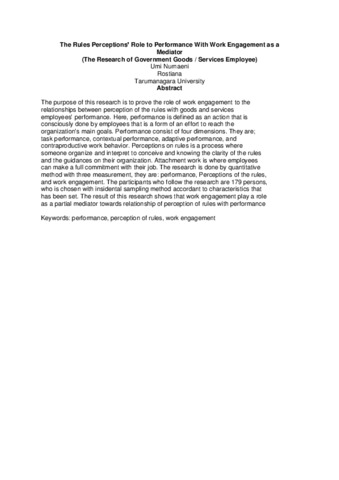 The purpose of this research is to prove the role of work engagement to the relationships between perception of the rules with goods and services employees’ performance. Here, performance is defined as an action that is consciously done by employees that is a form of an effort to reach the organization’s main goals. Performance consist of four dimensions. They are; task performance, contextual performance, adaptive performance, and contraproductive work behavior. Perceptions on rules is a process where someone organize and interpret to conceive and knowing the clarity of the rules and the guidances on their organization. Attachment work is where employees can make a full commitment with their job. The research is done by quantitative method with three measurement, they are: performance, Perceptions of the rules, and work engagement. The participants who follow the research are 179 persons, who is chosen with insidental sampling method accordant to characteristics that has been set. The result of this research shows that work engagement play a role asapartial mediator towardsrelationship ofperception of ruleswith performance