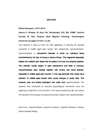 Damayanti, Riblita (2014) Penerapan cognitive behavior therapy (CBT) dalam mengurangi munculnya physucal symptoms pada seorang wanita dewasa madya yang mengalami hypochondriasis. Masters thesis, Universitas Tarumanagara.