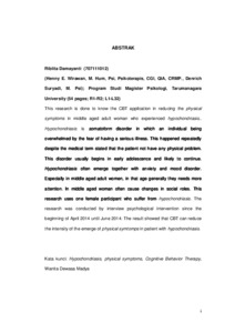 | Uncontrolled Keywords: | Hypochondriasis, physical symptoms, Cognitive Behavior Therapy, Wanita Dewasa Madya |