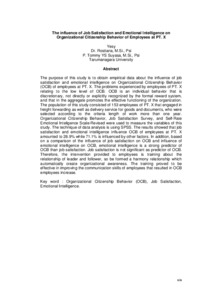 The purpose of this study is to obtain empirical data about the influence of job satisfaction and emotional intelligence on Organizational Citizenship Behavior (OCB) of employees at PT. X. The problems experienced by employees of PT. X relating to the low level of OCB. OCB is an individual behavior that is discretionary, not directly or explicitly recognized by the formal reward system, and that in the aggregate promotes the effective functioning of the organization. The population of this study consisted of 153 employees of PT. X that engaged in freight forwarding as well as delivery service for goods and documents, who were selected according to the criteria length of work more than one year. Organizational Citizenship Behavior, Job Satisfaction Survey, and Self-Rate Emotional Inteligence Scale-Revised were used to measure the variables of this study. The technique of data analysis is using SPSS. The results showed that job satisfaction and emotional intelligence influence OCB of employees at PT. X amounted to 28.9% while 71.1% is influenced by other factors. In addition, based on a comparison of the influence of job satisfaction on OCB and influence of emotional intelligence on OCB, emotional intelligence is a strong predictor of OCB than job satisfaction. Job satisfaction is not significant as predictor of OCB. Therefore, the intervention provided to employees is training about the relationship of leader and follower, so be formed a harmony relationship which automatically create organizational awareness. The training proved to be effective in improving the communication skills of employees that resulted in OCB employees increase.