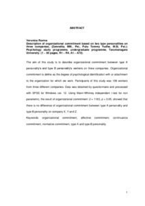 Ruvina, Veronica (2007) Gambaran komitmen organisasi ditinjau dari tipe kepribadian pada perusahaan X, Y, dan Z. Skripsi thesis, Universitas Tarumanagara.