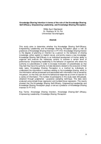 Ayuni Septiawati, Wilda (2016) Intensi berbagi pengengetahuan ditinjau dari peran knowledge sharing self-efficacy, empowering leadership, dan persepsi berbagi pengetahuan. Masters thesis, Universitas Tarumanagara.
