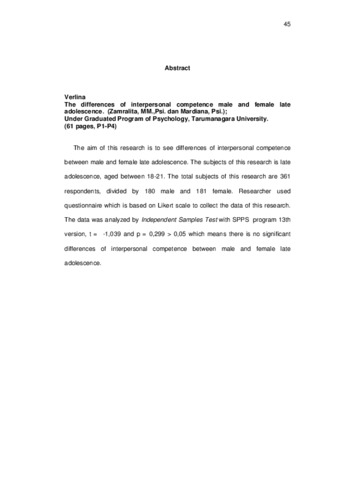 Verlina, Verlina (2007) Perbedaan kompetensi interpersonal remaja akhir laki-laki dan perempaun. Studi pada mahasiswa Universitas X. Skripsi thesis, Universitas Tarumanagara.