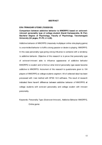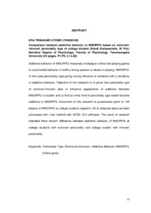 Trinasari, Era (2008) Perbandingan addictive behavior terhadap MMOPRG berdasarkan tipe kepribadian ekstovert-introvert pada mahasiswa. Skripsi thesis, Universitas Tarumanagara.