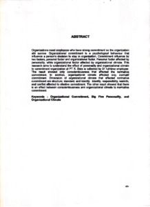 Hawariah, Ratu Siti (2015) Pengaruh kepribadian dan iklim organisasi terhadap komitmen organisasi di PT X. Masters thesis, Universitas Tarumanagara.