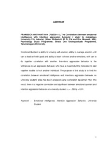 W, Fransisca Widiyanti H. (2008) Hubungan antara kecerdasan emosional dengan intensi perilaku agresif (Studi pada Mahasiswa Universitas X di Jakarta). Skripsi thesis, Universitas Tarumanagara.