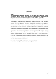 Mega, Mega (2008) Hubungan antara makna hidup dengan Self-Esteem pada dewasa muda. Skripsi thesis, Universitas Tarumanagara.