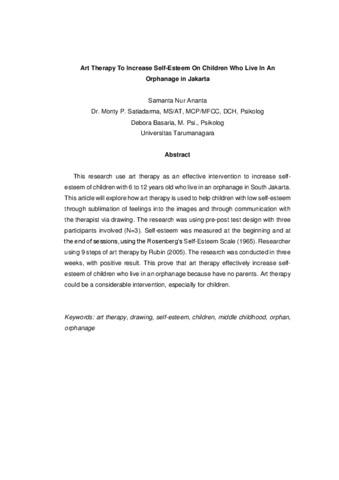 Nur Ananta, Samanta (2016) Efektivitas art therapy untuk meningkatkan self-esteem anak usia sekolah yang tinggal di Panti Asuhan X di Jakarta. Masters thesis, Universitas Tarumanagara.