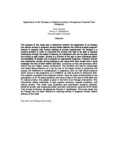 The purpose of this study was to determine whether the application of art therapy can reduce anxiety in pregnant woman before delivery first child and assist pregnant woman to express their anxiety feelings of anxiety experienced. Art therapy is a creative process in order to overcome the anxiety that help to be able to express themselves through the media of drawing, for individuals who are not able to express the anxiety to gain insight. Anxiety is a function of the ego to warn individuals about the probability of danger and to prepare an appropriate response. Pregnant women who experience anxiety during pregnancy can cause birth lasts longer and it could endanger the lives of both mother and fetus. Excessive anxiety will adversely affect stimuli that can trigger uterine contractions. The condition can lead to miscarriage and raised blood pressure so it can be one of the trigger factors of poisoning and causes the likelihood of complications in pregnancy such as high blood pressure which occurs in late pregnancy or in childbirth, as well as prone to premature birth. The subjects consisted of two pregnant women, have the same characteristics of the participants, ie 27-40 weeks gestation who have anxiety in the face of child labor first To reduce anxiety, the subject is given in the form of art therapy intervention. This intervention allows individuals to gain positive emotions, relaxed conditions, and reduce anxiety. This study uses qualitative and quantitative research methods. Maternal anxiety was measured before and after intervention using the STAI (State Trait Anxiety Inventory) developed by Charles D. Spielberger. The study states that art therapy has not been effective in reducing anxiety in pregnant women before delivery of first child.
