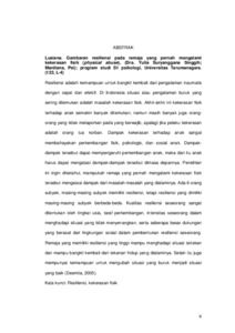 Lusiana, Lusiana (2008) Gambaran Resiliensi Remaja Akhir yang Pernah Mengalami Kekerasan Fisik. Skripsi thesis, Universitas Tarumanagara.