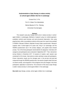 | Uncontrolled Keywords: | play therapy, anxiety, school aged, children live in orphanage |