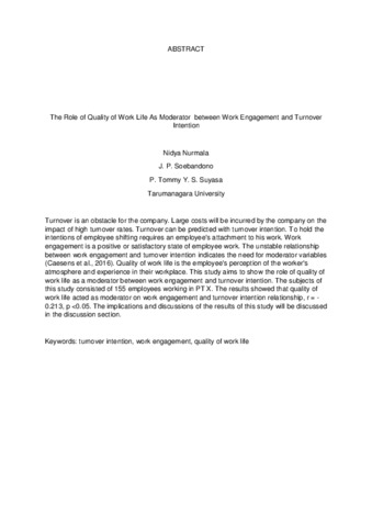 Turnover is an obstacle for the company. Large costs will be incurred by the company on the impact of high turnover rates. Turnover can be predicted with turnover intention. To hold the intentions of employee shifting requires an employee's attachment to his work. Work engagement is a positive or satisfactory state of employee work. The unstable relationship between work engagement and turnover intention indicates the need for moderator variables (Caesens et al., 2016). Quality of work life is the employee's perception of the worker's atmosphere and experience in their workplace. This study aims to show the role of quality of work life as a moderator between work engagement and turnover intention. The subjects of this study consisted of 155 employees working in PT X. The results showed that quality of work life acted as moderator on work engagement and turnover intention relationship, r = -0.213, p <0.05. The implications and discussions of the results of this study will be discussed in the discussion section.