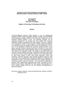 | Uncontrolled Keywords: | "program evaluation, community-based learning, character, teamwork, secondary school " |