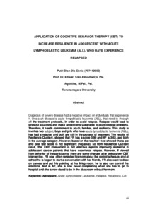 Diagnosis of severe disease had a negative impact on individuals that experience it. One such disease is acute lympoblastic leukemia (ALL), that need to through all the treatment protocols, in order to avoid relapse. Relapse would lead to stressful situations and make adolescents vulnerable to psychological problems. Therefore, it needs commitment to youth, families, and resilience. This study is involves two subject, boys and girls who have acute lympoblastic leukemia (ALL), has had a relapse, and both are still in the process of treatment. The results of Resilience Quotient, showed that FR has a score 3.90 and AF is 3.63, and both in the average category. However, based on the result of t-test showed that a pre and post test score is not significant (negative), so from Resilience Quotient result, that CBT intervention is not effective againts improving resilience in adolescent cancer patients that have experience relapse. However, if viewed from behavior of the participants, there are some changes after being given CBT intervention. FR now often reminded his mom about the control schedule, and at school he is began to start a conversation with her friends, FR also want to draw on canvas and put his painting at his living room, he is also can control his emotions. And in AF, she is now never complaining when she has to go to hospital and she is now dared to be in the classroom without her mom.