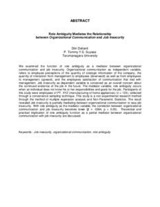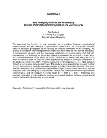 Delianti, Ditri (2017) Fungsi ketidakjelasan peran sebagai mediator antara komunikasi organisasi dan rasa tidak aman bekerja. Masters thesis, Universitas Tarumanagara.