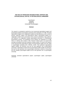 | Uncontrolled Keywords: | perceived organizational support, psychological capital, psychological ownership |