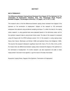 TRISNAWATI, MAYA (2015) Perbedaan Coping Stress Ditinjau dari Derajat Optimisme (Penelitian Pada Karyawan yang Mengalami PHK). Skripsi thesis, Universitas Tarumanagara.