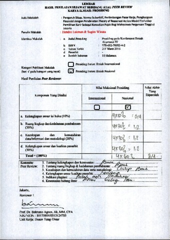 Hendro Lukman,S.E., M.M, Ak., CPMA., CA, CPA (Aust.) CSRS, peer review and Sugim Winata, peer review (2017) Peer Review 09 Hendro Lukman,S.E., M.M, Ak., CPMA., CA, CPA (Aust.) CSRS & Sugim Winata. Review : Pengaruh Sikap, Norma Subyektif, Pertimbangan Pasar Kerja, Penghargaan Finansial dengan Pendekatan Theory of Reasoned Action Model Terhadap Pemilihan Karir Sebagai Konsultan Pajak Bagi Mahasiswa Perguruan Tinggi di Jakarta. ISSN 978-602-70083-4-2