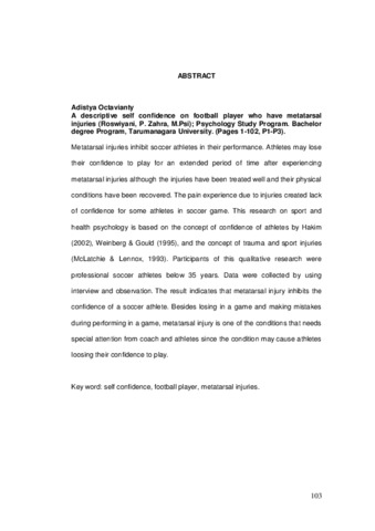 Octavianty, Adistya (2009) Gambaran Rasa Percaya Diri pada Atlet Sepak Bola yang Mengalami Cedera Metatarsal. Skripsi thesis, Universitas Tarumanagara.