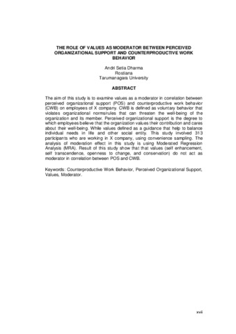 The aim of this study is to examine values as a moderator in correlation between perceived organizational support (POS) and counterproductive work behavior (CWB) on employees of X company. CWB is defined as voluntary behavior that violates organizational norms/rules that can threaten the well-being of the organization and its member. Perceived organizational support is the degree to which employees believe that the organization values their contribution and cares about their well-being. While values defined as a guidance that help to balance individual needs in life and other social entity. This study involved 313 participants who are working in X company, using convenience sampling. The analysis of moderation effect in this study is using Moderated Regression Analysis (MRA). Result of this study show that that values (self enhancement, self transcendence, openness to change, and conservation) do not act as moderator in correlation between POS and CWB.