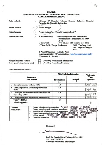 Agus Zainul Arifin, peer review (2018) Review 19 Agus Zainul Arifin. Review : Influence Of Financial Attitude, Financial Behavior, Financial Capability On Financial Satisfaction. ISSN 2352-5398/9789462524750