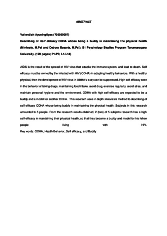 A., Vallendiah (2010) Gambaran self efficacy ODHA yang menjadi pendamping dalam menjaga kesehatan fisik. Skripsi thesis, Universitas Tarumanagara.