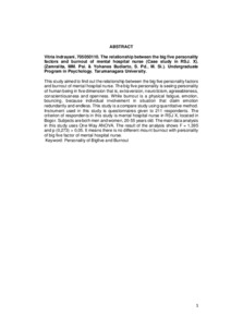 Indrayani, Vitria (2010) Perbedaan tingkat burnout dilihat dari tipe kepribadian big five pada perawat di trait perawatan psikiatri di RSJ X. Skripsi thesis, Universitas Tarumanagara.