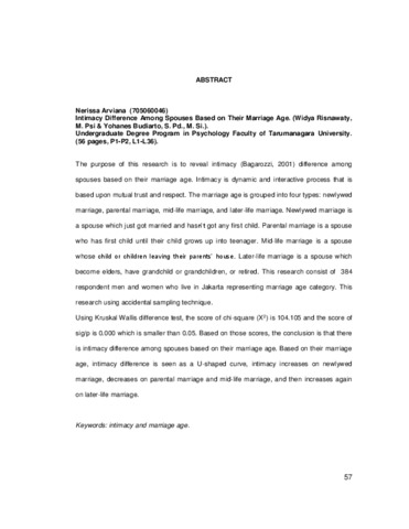 Arviana, Nerissa (2010) Perbedaan Intimacy pasangan ditinjau dari usia pernikahan. Skripsi thesis, Universitas Tarumanagara.