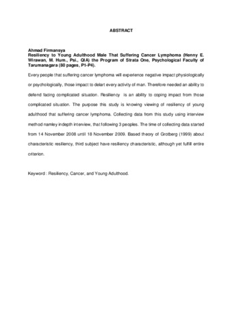 Firmansya, Ahmad (2010) Resiliensi pada laki-laki dewasa muda yang menderita kanker getah bening. Skripsi thesis, Universitas Tarumanagara.