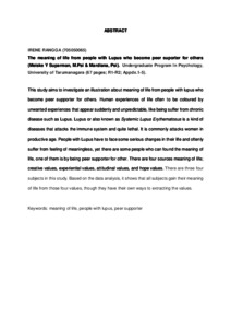 This study aims to investigate an illustration about meaning of life from people with lupus who become peer supporter for others. Human experiences of life often to be coloured by unwanted experiences that appear suddenly and unpredictable, like being suffer from chronic disease such as Lupus. Lupus or also known as Systemic Lupus Erythematosus is a kind of diseases that attacks the immune system and quite lethal. It is commonly attacks women in productive age. People with Lupus have to face some serious changes in their life and oftenly suffer from feeling of meaningless, yet there are some people who can found the meaning of life, one of them is by being peer supporter for other. There are four sources meaning of life; creative values, experiential values, attitudinal values, and hope values. There are three four subjects in this study. Based on the data analysis, it shows that all subjects gain their meaning of life from those four values, though they have their own ways to extracting the values.
