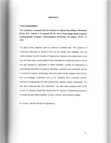 Chairunnisa, Yuni (2009) Pengembangan alat ukur minat untuk Fakultas Teknik. Skripsi thesis, Universitas Tarumanagara.