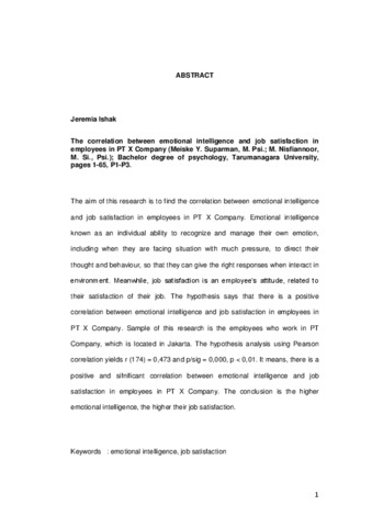 The aim of this research is to find the correlation between emotional intelligence and job satisfaction in employees in PT X Company. Emotional intelligence known as an individual ability to recognize and manage their own emotion, including when they are facing situation with much pressure, to direct their thought and behaviour, so that they can give the right responses when interact in environment. Meanwhile, job satisfaction is an employee’s attitude, related to their satisfaction of their job. The hypothesis says that there is a positive correlation between emotional intelligence and job satisfaction in employees in PT X Company. Sample of this research is the employees who work in PT Company, which is located in Jakarta. The hypothesis analysis using Pearson correlation yields r (174) = 0,473 and p/sig = 0,000, p < 0,01. It means, there is a positive and sifnificant correlation between emotional intelligence and job satisfaction in employees in PT X Company. The conclusion is the higher emotional intelligence, the higher their job satisfaction.