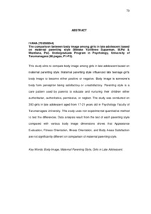 Ivana, Ivana (2010) Perbandingan Body Image Remaja Akhir Putri ditinjau dari pola asuh ibu. Skripsi thesis, universitas Tarumanagara.