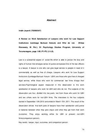 Law is a substantial aspect of social life which is able to protect the duty and rights of human that emerges sense of justice and peace.One of the law officers is a lawyer. A lawyer is one who can give legal service to people in need of it commercially as well as free of charge. Lawyers who work for Law Support Institutions (Lembaga Bantuan Hukum / LBH) are those who give free of charged legal service, while those who work for commercial law firms charge their services.Psychological aspect measured in this observation is the work satisfaction of lawyers who work for LBH and who do not. The subjects of the observation are four, divided into two parts: two from those who work for LBH and two others work for non-LBH firms. The interviews to the four subjects started in September 10th,2010 and ended in March 15th, 2011. The result of the observation shows that both pairs of lawyers have their satisfaction and justice or balance between what they give (input) and what they get from their work (outcome). They enjoy working either for LBH or present non-LBH firms(comparison person).