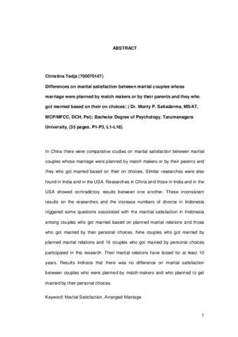Tedja, Christina (2011) Perbedaan tingkat kepuasan pernikahan pada pernikahan yang dijodohkan dan pernikahan atas pilihan sendiri (Sebuah studi perbandingan di Pulau Batam). Skripsi thesis, Universitas Tarumanagara.