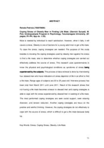 Patricia, Renata (2011) Coping pria obesitas terhadap stress dalam mencari pasangan hidup. Skripsi thesis, Universitas Tarumanagara.