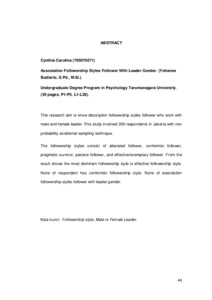 The followership styles consist of alienated follower, conformist follower, pragmatic survivor, passive follower, and effective/exemplary follower. From the result shows the most dominant followership style is effective followership style. None of respondent has conformist followership style. None of association followership styles follower with leader gender.