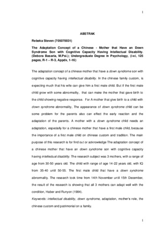 Steven, Rebeka (2012) Gambaran penyesuaian diri ibu suku Tionghoa yang memiliki anak pertama laki-laki down syndrome dengan kapasitas kognitif mengalami intellectual disability. Skripsi thesis, Universitas Tarumanagara.