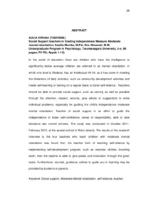 Kirana, Aulia (2012) Dukungan sosial guru dalam upaya membimbing kemandirian anak Moderate Mental Retardation. Skripsi thesis, Universitas Tarumanagara.