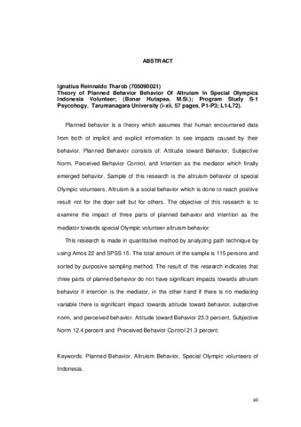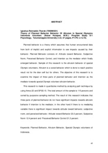 Tharob, Ignatius Reinnaldo (2013) Tinjauan Planned Behavior Terhadap Perilaku Altruistik Pada Relawan Special Olympic Indonesia. Skripsi thesis, Universitas Tarumanagara.